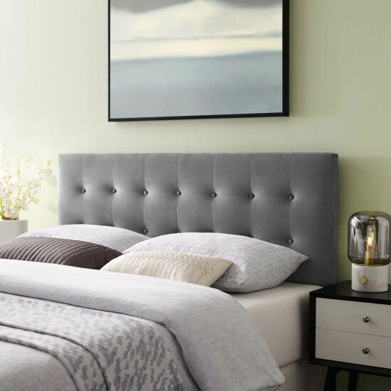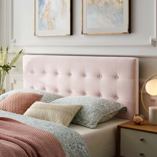 Instill classic elegance and modern luxury with the Queen Biscuit Tufted Velvet Headboard. The headboard features charming biscuit button tufting for plush vintage glamour and timeless appeal. An elegant centerpiece to the master bedroom or guest suite, this upholstered velvet headboard for queen bed frames provides a soft, stain-resistant update for premium comfort while relaxing, reading, or conversing in bed. Solidly constructed from plywood and fiberboard with dense foam padding, this queen size velvet headboard comes with five mounting positions that are height adjustable from 45′ – 52.5′.