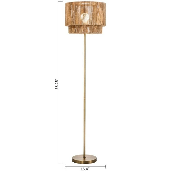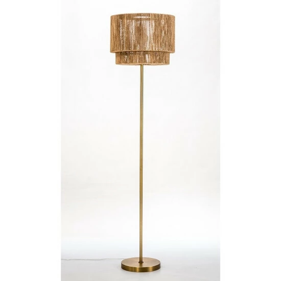 This Floor Lamp offers a finely twisted jute that is carefully stretched over a steel frame. This mid-century-inspired floor lamp brings a sense of casual elegance to your living space. The matte golden brass base complements the natural jute rope canopy for a refined, elegant look. Each lamp is handcrafted from the best materials.