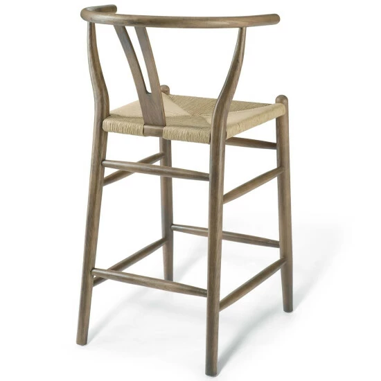 Upgrade your home bar area in mid-century modern style with this wood counter stool. The durable elm wood frame offers years of sturdy use, and the half-moon design contours your body in comfort while you drink your coffee or read the paper. Make minimalist style come to life with this armless chair, which works just as well in a living area as they do in the kitchen, and let the grey finish blend seamlessly into your existing home decor.