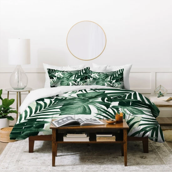 Give your bed a makeover with this duvet cover set. This set includes one duvet cover and two matching pillow shams. Made of woven polyester, this set is available in Twin XL, queen, or king sizes, The hidden zipper and interior corner ties provide easy maintenance and care. This duvet cover set is one of the easiest ways to transform a stale bedspread into a design-forward statement piece.