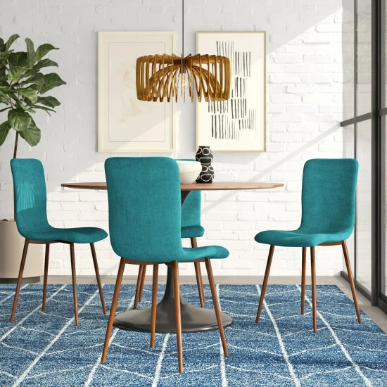 Complete your mid-century modern dining area with these chairs from Carson Carrington. The metal frames feature ergonomic seats, padded with foam, and upholstered with fabric. Choose from three frame finishes and nine fabric colors to perfectly complement your decor.