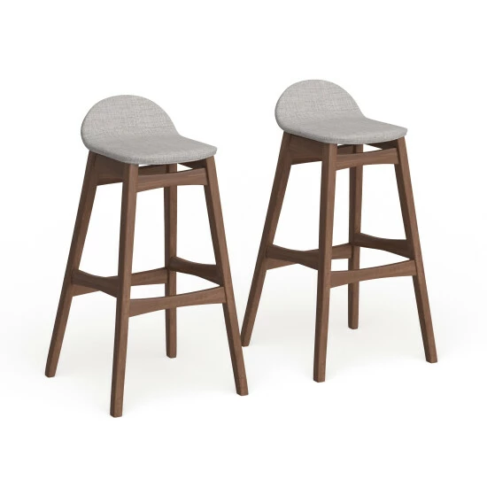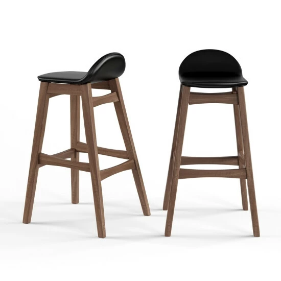 Add a bit of mid-century flair to your kitchen decor with this stylish stool set. The smooth wood and veneer frame features a footrest for comfort and a versatile walnut finish. Polyester foam filling pads the low seat, and fabric or faux leather upholstery adds a contemporary finish.