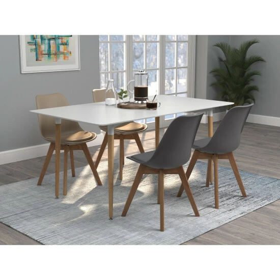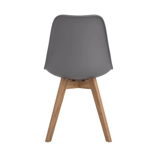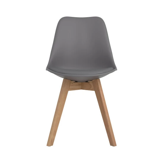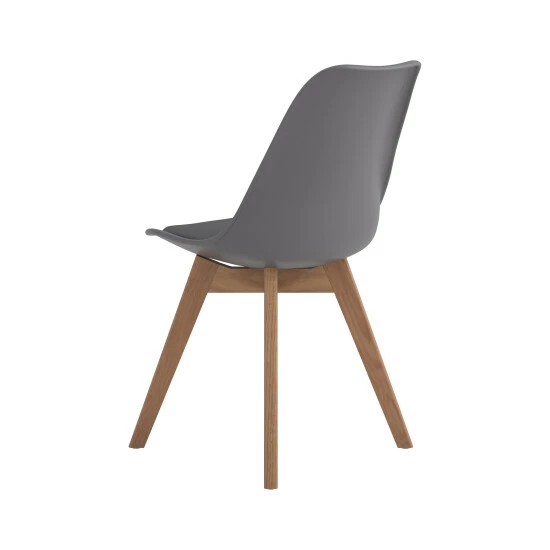 Add some pop to your dining area with this mid-century modern dining chair. This dining chair has a natural oak finish and is available in either a grey or tan color option. The chairs are both durable and flexible. The smooth, rounded seat is topped with comfortable padding, giving you plenty of cushion and support.Crafted with durability in mind, its heat and stress resistant design stands up to heavy duty use.