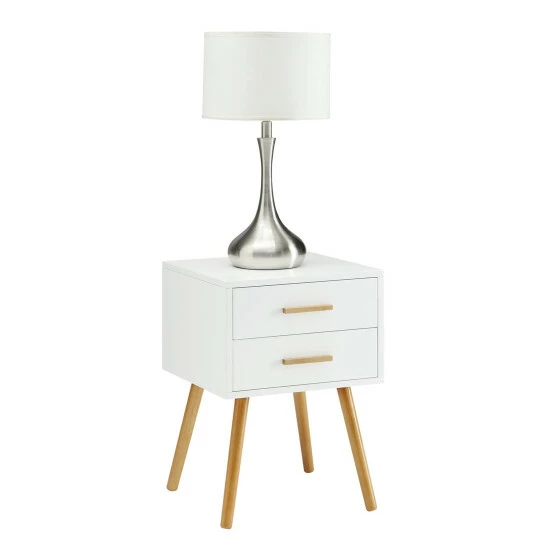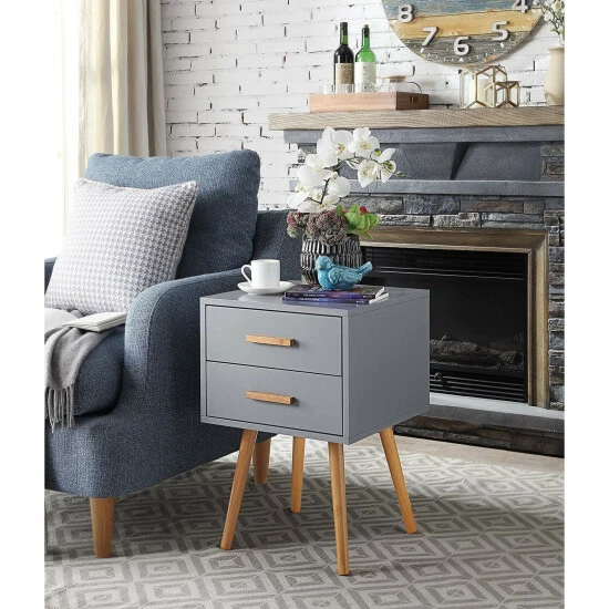 Simple design meets mid-century style with this Carson Carrington Odda end table. The end table features a square box body with two drawers, perfect for storing your must-have items, raised over flared legs that give the piece an artistic and retro vibe.