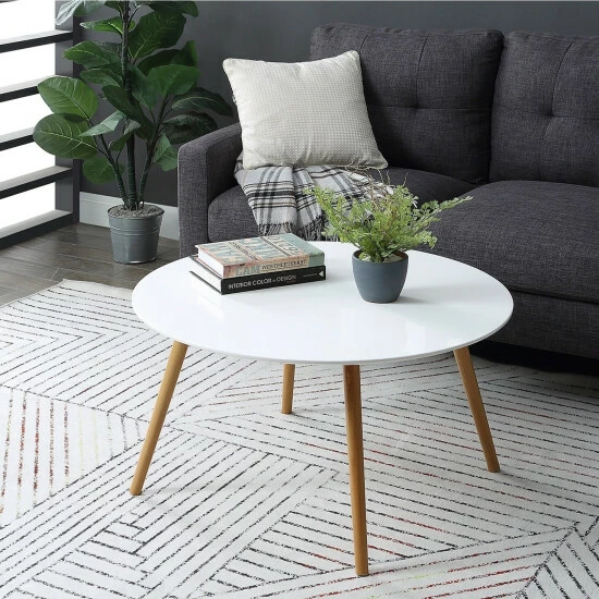 Featuring a minimalistic mid-century design, the Carson Carrington Odda Round Coffee Table Β is the perfect addition to your modern home. Its simplistic Scandinavian style and two-toned finish will create an airy feel to any living space while optimizing display space. The large round tabletop is made of MDF and finished with a high gloss. With its sturdy solid rubberwood legs, this 15-pound coffee table is built for longevity and easy maintenance. Enjoy in no time with its easy 2-step assembly
