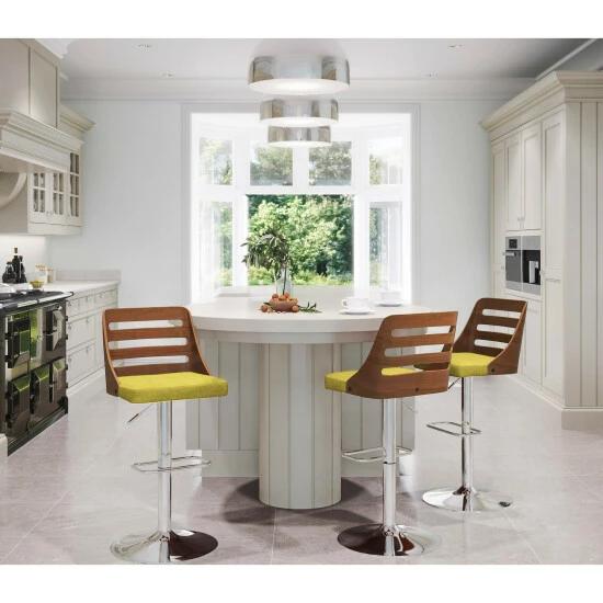 Our modern take on the signature ladder-back design will make a strong presentation in any setting. The Oglala Barstool will have family and friends lingering, whether dining or just socializing. The upholstered seat, available in various color options, is contrasted by a gorgeous geometrical bent wood backrest. The Oglala Barstool will make a stylish addition to any kitchen or bar area.