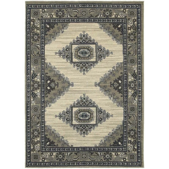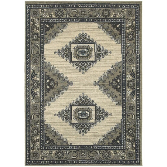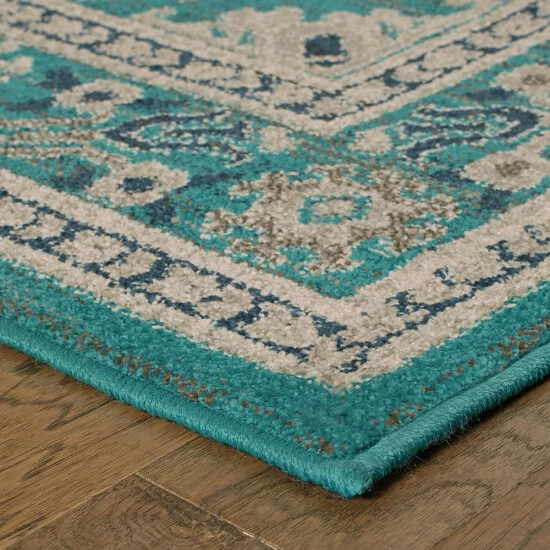 Refresh your living area with this Ornskoldsvik area rug from Carson Carrington. The rug is machine-woven from polypropylene and synthetic fiber for a stain-resistant design. The double diamond medallion pattern with a floral border completes the traditional style of this lovely rug.