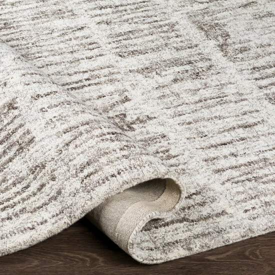 Modern style defines this Oulu area from Carson Carrington. Hand-tufted from wool and viscose, the chic rug has an uneven striation pattern in uneven rows. The attractive design is available in grey/black, orange/grey, or green/cream, making this rectangular rug an excellent choice for your decor.