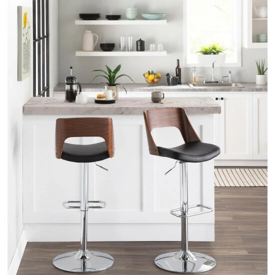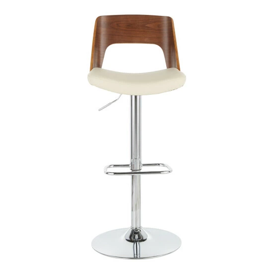 The Paula Barstool will add a touch of elegance and luxury to any group gathering, whether relaxing or recharging. The leather upholstery, available in cream or black, is easy to clean with a quick wipe. The bent wood backrest adds rich contrast to the sturdy, stainless steel frame while an attached footrest is sure to result in hours of easy conversation.