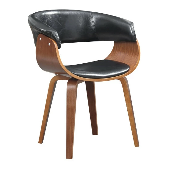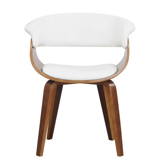 Provide a pop of modern pizzazz to your area of choice with the curved back and eye-catching design of this chair. The back and seat cushions have been beautifully upholstered in your choice of a black or white faux leather. Thoughtfully built and elegantly minimalist, this dining chair offers sturdy construction and curved, gently angled legs for reliable stability.