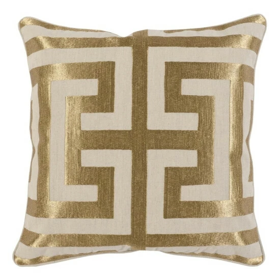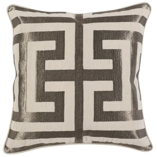 Lend some sophistication to your living room decor with this chic throw pillow. This square pillow features hand-guided embroidery with a Greek key motif pattern. The pattern comes in your choice of color to best complement your space.
