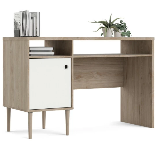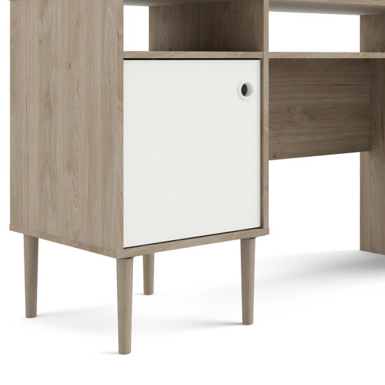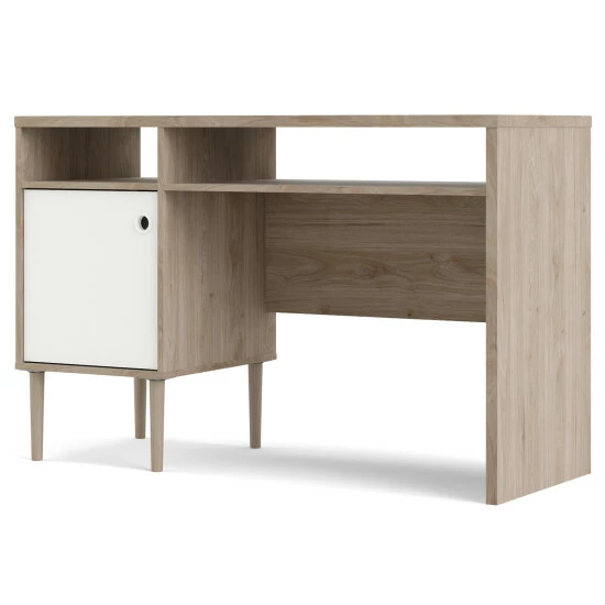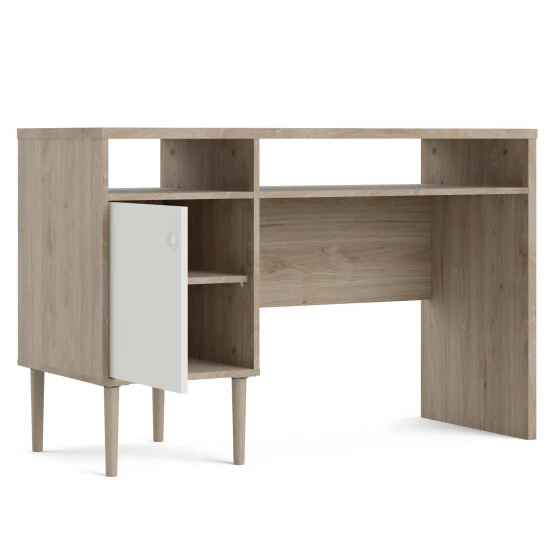 Create a beautiful expression with the display and storage features of the Carson Carrington Rome collection. The traditional in-frame style is highlighted by the recessed fronts, and the color combination of natural looking faux hickory contrasts with white matte making the Rome collection appeal to all generations. The Rome Desk has one door with one fixed shelf providing hidden storage for all your office supplies while the two open fixed shelves provide quick access to additonal office items. Simple pigeon hole handle in white on the door ensures easy access to belongings hidden away. The Carson Carrington Rome collection has a easy-to-clean foil surface and produced in Denmark. Complete your living space with other items from the Rome collection.