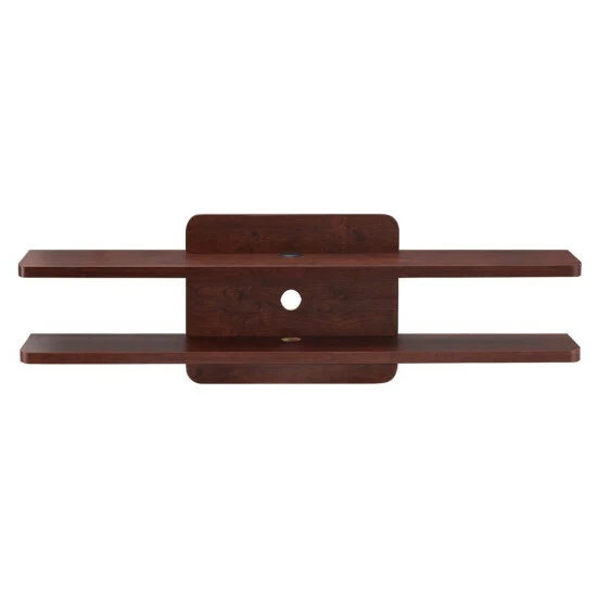 A stunning piece to add to your living space, this wall-mounted shelving unit is a gorgeous media console to feature in a modern home. The dual shelves, each of which features long panels and rounded corners, are attached to a square back panel to enhance the contemporary visual.