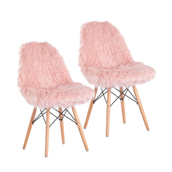 This faux fur chair is made with Mongolian faux fur that will provide plenty of luxurious comfort. The chair is constructed with durable beech wood legs and clean, simple lines. Available in a set of two, the chairs have easy to match neutral colors and will fit seamlessly with any existing decor.