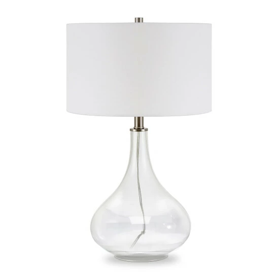 This glass lamp adds sophistication and depth to any space with its decanter shape which allows light to gently bounce of the orb and curves of the organic teardrop shape of the base.ย