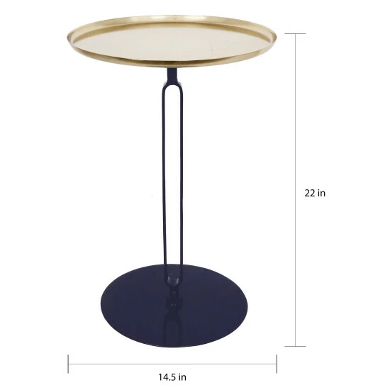 Elegant minimalism takes center stage in this side table design. An on-trend juxtaposition of navy and antique brass, this piece makes a style statement within the modern living room.