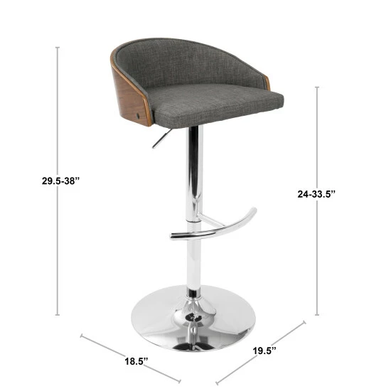 Add a dynamic twist to your bar or counter with the Sauda Barstool. Woven fabric upholstery accented by walnut-finished bent wood makes for a stylish combination. With an adjustable base, the Sauda Barstool is the perfect option for any area.