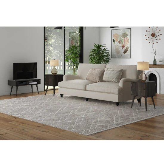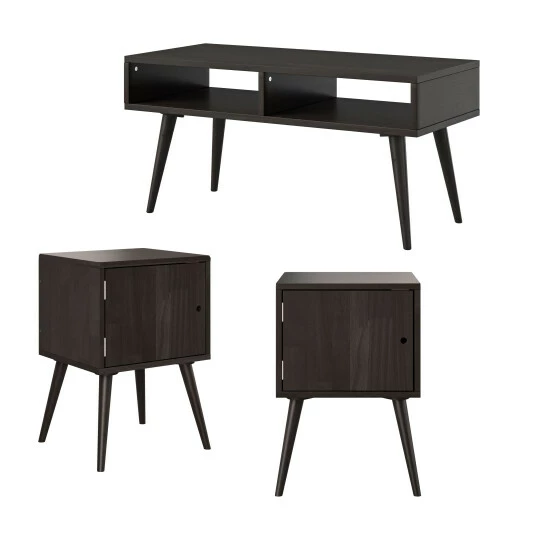 This 3-piece mid century modern solid wood set includes 2 cabinet-style square end tables and a TV stand. The set includes all the pieces you need to update the look of your living room or family room.