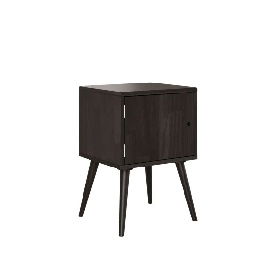 - Square-shaped solid wood end tables feature a convenient door with a cut out circle handle and round legs