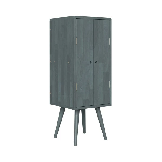 - The chests features doors, cut-out circle handles, round flared legs and roomy cabinet interiors with a single shelf