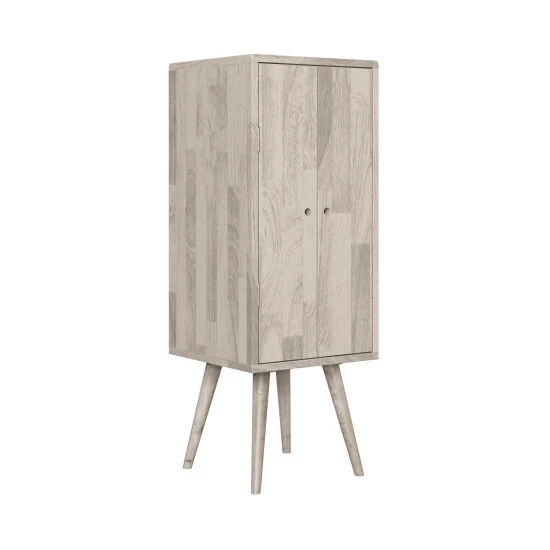 - The double door cabinets features a roomy cabinet interior with a single shelf, cut-out circle handles and round flared legs