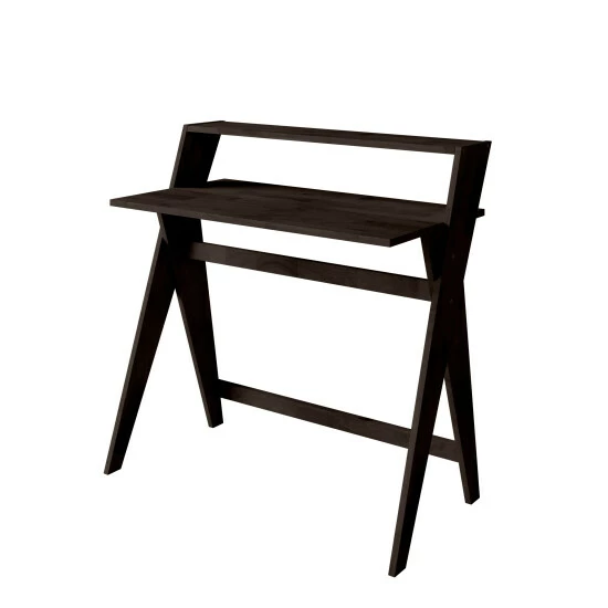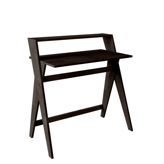 Streamlined and sturdy, this study desk exudes all the hallmarks of Scandinavian design. Its compact footprint makes it a smart choice for smaller spaces. The desktop displays visible knots for added character and offers plenty of space for tackling paperwork, studying or holding a laptop. Features include a circular cutout in the desktop and shelf.