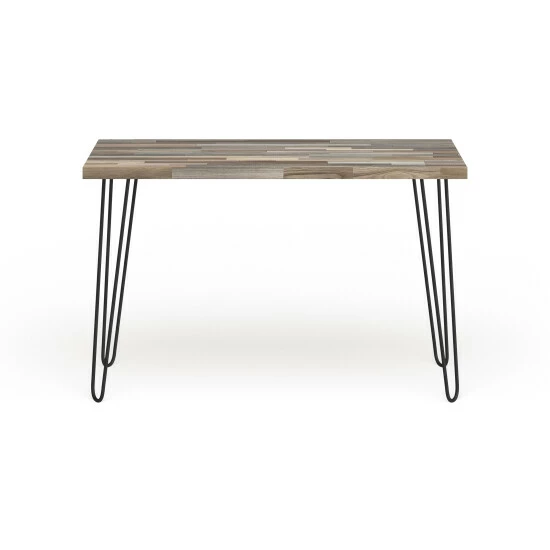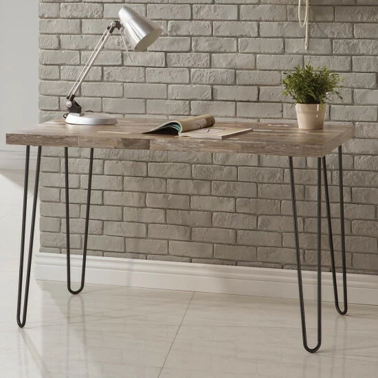 With its sleek design and compact size, this desk is well suited to small work spaces such as apartments or dormitories. The MDF and veneer construction is balanced on modern hairpin legs for a chic Scandinavian look.