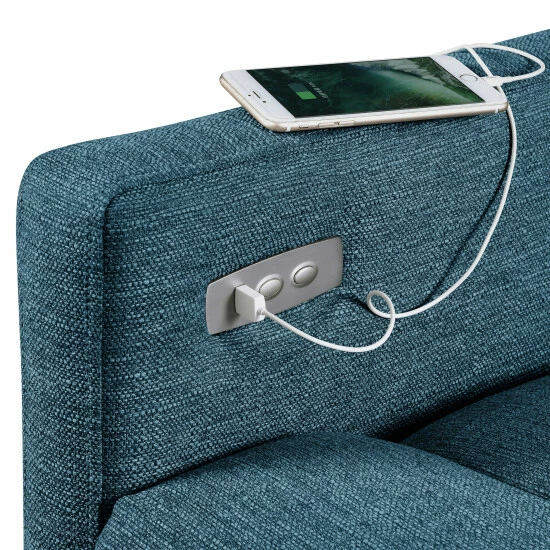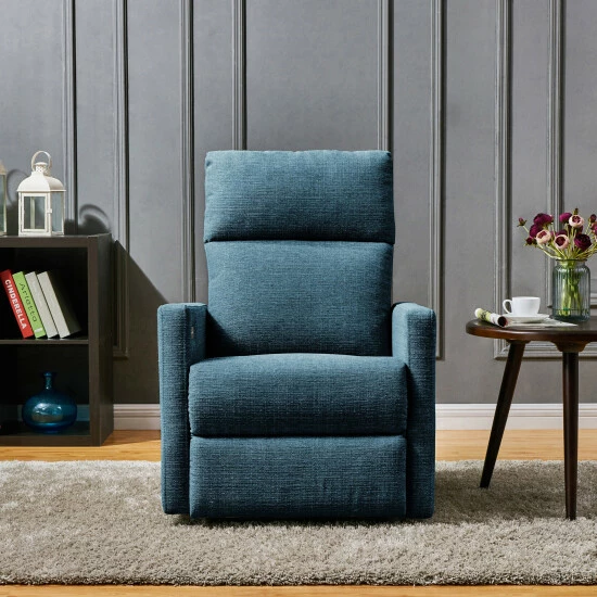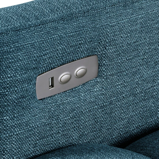 Enjoy premium relaxation with this luxury recliner chair. Thanks to the built-in electric toggle, simply touch a button and enjoy a relaxing reclined position after a hard day, complete with a built-in USB port to charge your phone while you lounge. The blue linen-like fabric upholstery complements contemporary homes and plush cushions provide superb comfort.
