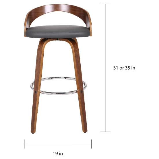 Add mid-century modern style to your home with this Carson Carrington Solavagen Bar Stool. The walnut-finished frame features a sculptural seat back, a plushly-padded swivel seat, and espresso faux-leather upholstery for easy upkeep. Choose from two height options to suit your kitchen or bar.