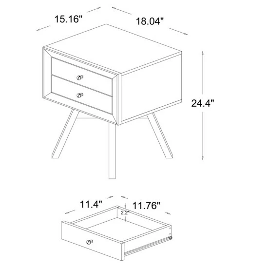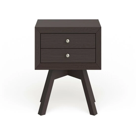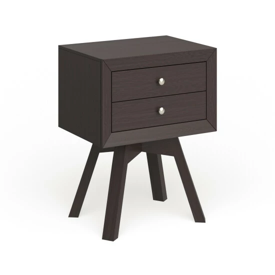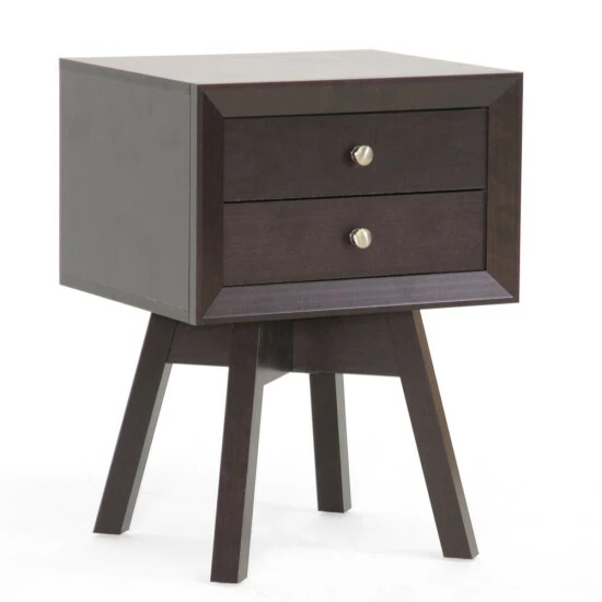 Bring this modern nightstand to your guest room or add it to a dorm room for an elegant touch with a small footprint. The two drawers on this nightstand provide storage space for magazines, remote controls and other items you want to keep close at hand, while the tabletop provides space to display a vibrant plant or favorite family photo.