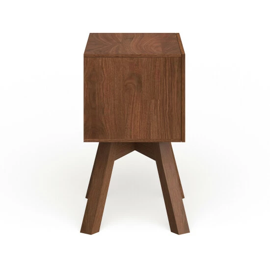 Upgrade your bedside storage with the chic Solna nightstand. The walnut-finished frame encases two white drawers that are accented with silvertone drawer pulls. Complement this mid-century table with a silver lamp or your favorite framed photo.
