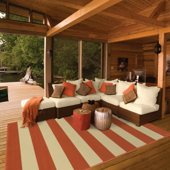 Bring a vibrant cabana style to your space with the Sonderso rug from Carson Carrington. Featuring a thick, color-block design, this polypropylene rug becomes the centerpiece of an indoor or outdoor space.