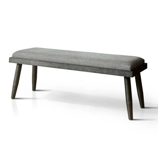 Maximize seating space with this mid-century upholstered dining bench. With space for two, this bench keeps dinner guests comfortable atop foam padding and linen-like upholstery, and the fabric comes in a solid neutral grey color for easy pairing.