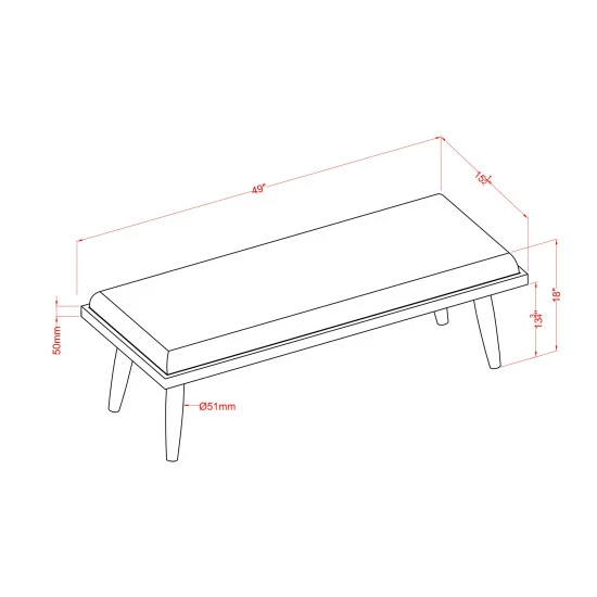 - Dining bench dimensions: 15.75 inches high x 49 inches wide x 15.5 inches deep