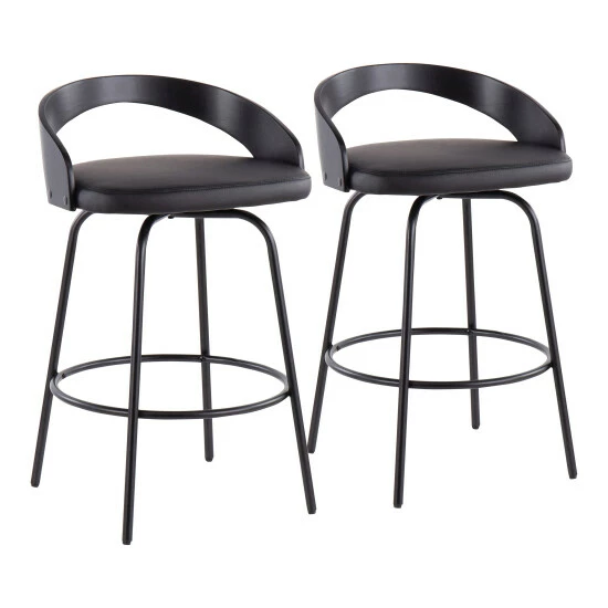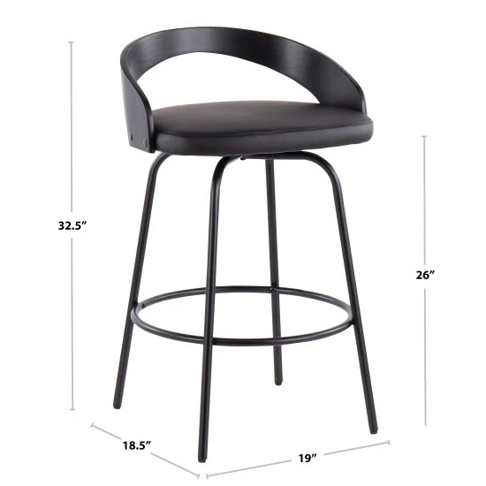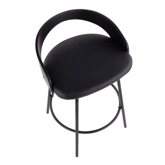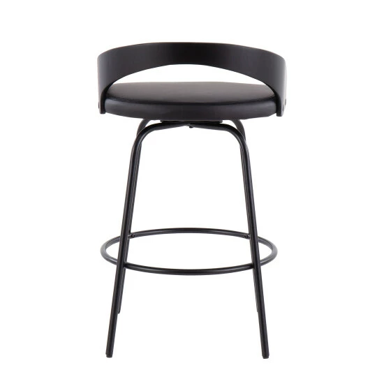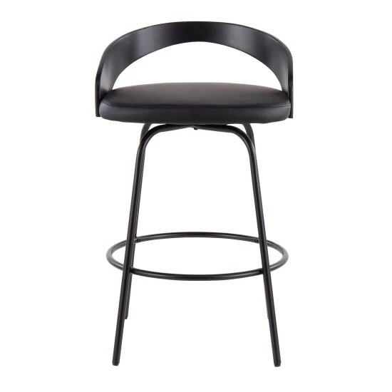 Introducing the Stavanger Fixed-Height Swivel Counter Stool. With a low curved back and metal rounded legs radiate sophistication while modern features like a faux leather upholstered cushioned seat that swivels and a round black footrest bring this piece into a contemporary class all of its own.