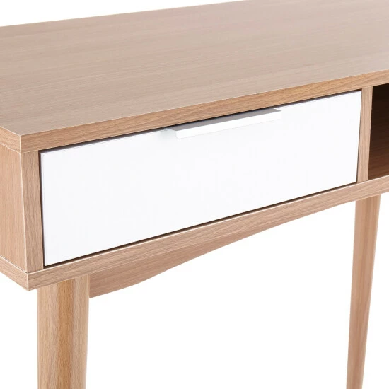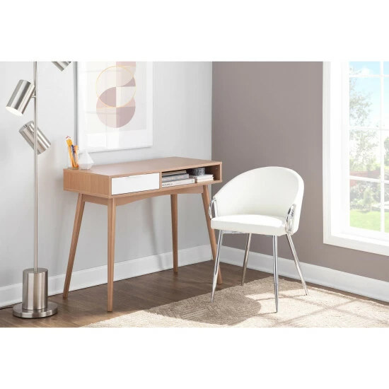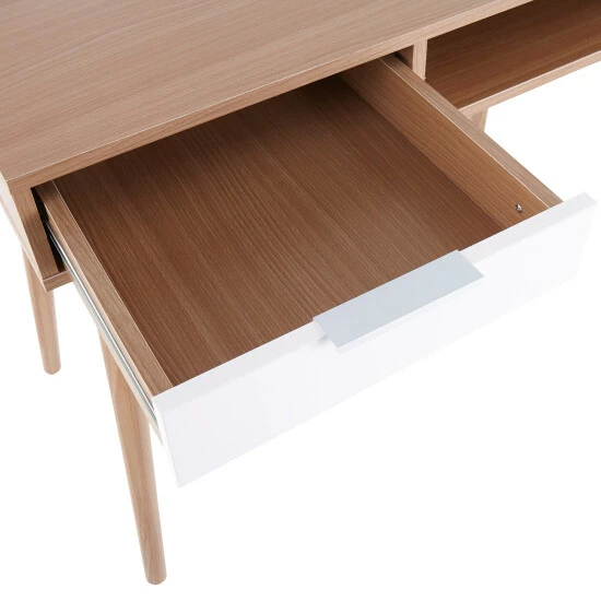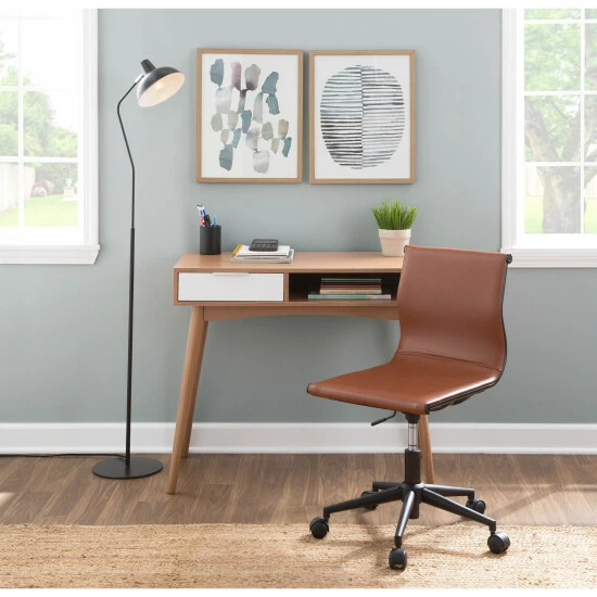 Add casual style to any office space with the Stone Desk. The Stone Desk’s simplistic design is accentuated by a rectangular wood top, one drawer, and an open shelf, perfect for storing all of your supplies!