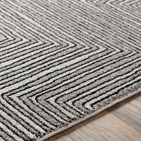 Boasting a distinctively elegant retro flair, this area rug showcases a striped diamond pattern, for a fun, singular optical illusion effect. With a comfortable, medium-cut pile and minimal to zero shedding, this piece offers style and comfort at once.