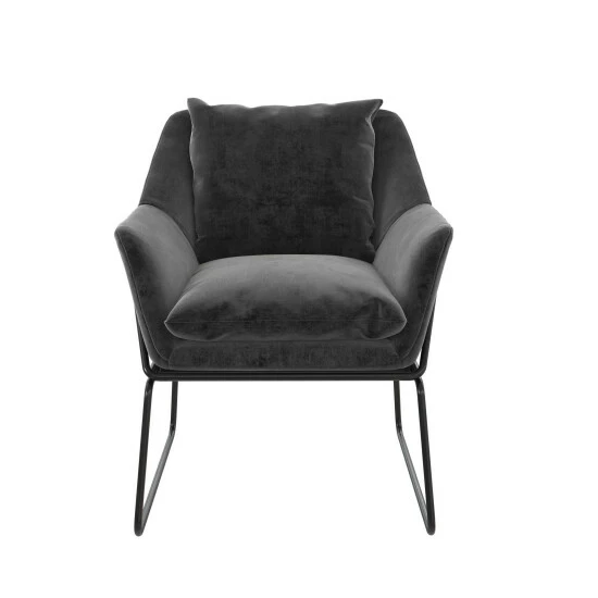 Experience a new sitting experience with this accent chair. The chair comes in fashion-forward colors like grey, blue and green and is upholstered in lush velvet for a smooth touch and feel while adding a flair of modern luxury wherever it is placed. The chair is designed for the ultimate comfort with plush cushioned back rest and seating, along with sloped armrests which ensure a comfortable and relaxing time whenever you sit on it. In addition, the metal frame not only highlights the sleek structure but also provides stability and durability throughout daily uses. Perfectly compliment your dining room, living room or office space.