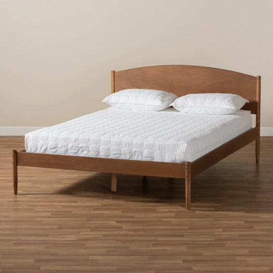 Tie your bedroom together with this mid-century modern platform bed. This bed is made of rubber wood and has a ash walnut finish. Clean lines and natural wood grains give this bed a subtle and refined look.
