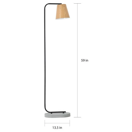 Get some much needed lighting with this handy floor lamp. This lamp has a black finish and a wooden shade. The soft tone of the concrete base is balanced beautifully by the textured black steel.
