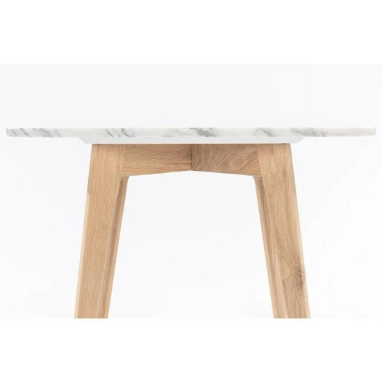 This White Marble table with mid century wood legs is a chic nod to the past, and feels fresh in any modern living space. Thoughtful product development and design brings you a marble top end table with study interlocked legs carved from durable elm wood enhanced with your choice of an oak finish or walnut finish. Both wood tones are equally beautiful!