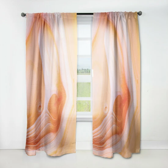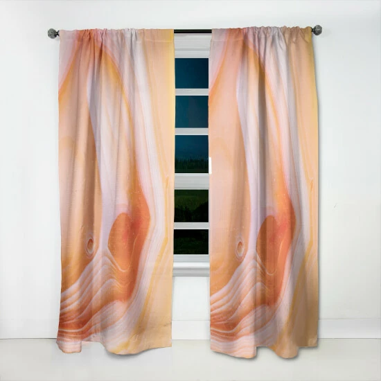 Elevate your home decor with these ‘Mineral Orange Agate’ mid-century modern curtain panels. Featuring a bright abstract pattern printed using eco-friendly fade-resistant ink on polyester faux-linen fabric, one of these curtain panels withstand heavy use for enhanced durability and lively colors.