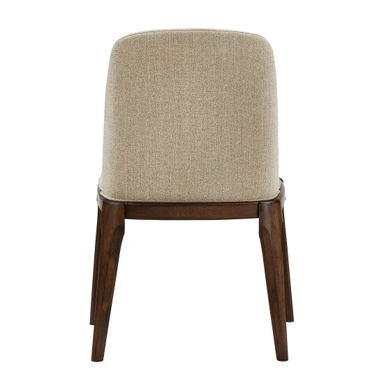 Provide some extra seating to your with this set of side chairs. These chairs feature a soft cocoa upholstered seat for comfort. The sturdy rubberwood constructed frame is finished in a warm, walnut finish so you can easily pair these chairs within neutral color schemes. The solid back provides plenty of overall support.
