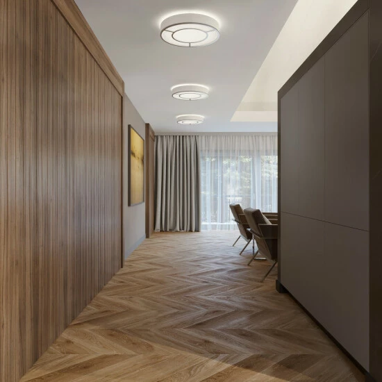 Brighten up your home with this 16-inch satin nickel LED flush mount. This modern flush mount features ornamental metal accents and a white linen fabric side diffuser