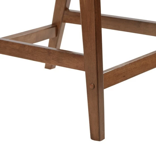 Give your home a touch of retro charm with this elegant stool. Available with navy or grey upholstery, the stool’s clean lines and pecan wood finish lend mid-century style to any decor. The sturdy solid wood frame and plush foam padding ensure comfort and support.