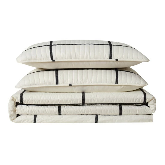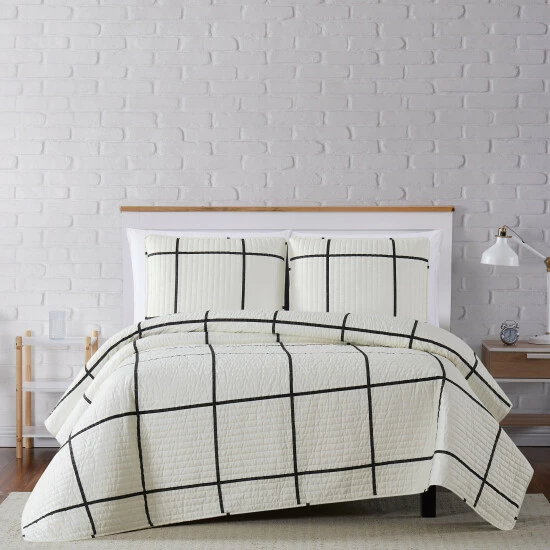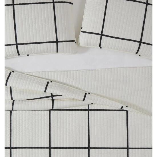 This large scale windowpane print is a great coordinate to a modern room or a simple coordinate to finish any bedroom. The cloth uses a black print on a solid color base cloth. The base cloth is a 100-percent microfiber polyester fabric that is double brushed for added softness. Fabrics are specially treated to provide the ultimate in softness.