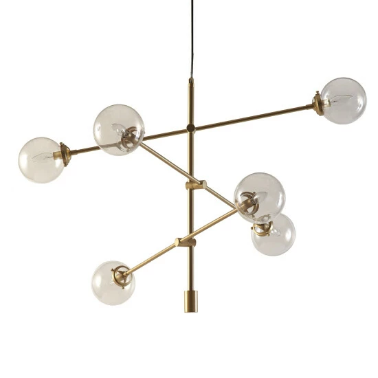 Bring mid-century modern style and intrigue to your living space with this unique chandelier. Crafted from metal and glass, the chic design features three angled rods that cross over the down rod for a unique, artistic design. The end of each angled rod supports a glass orb shade that creates a trendy, eye-catching look.