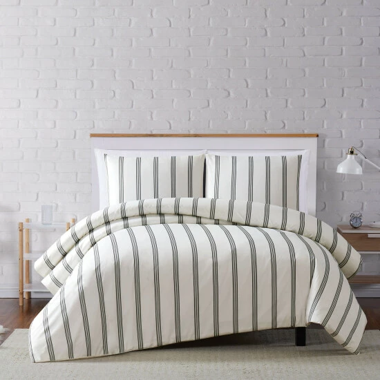 This easy to coordinate three part stripe pattern runs form head to toe on the bed for an easy and timeless coordinate. The cloth uses a black print on a solid color base cloth. The base cloth is a 100-percent microfiber polyester fabric that is double brushed for added softness. Fabrics are specially treated to provide the ultimate in softness. These items are easy care and wrinkle free and ready for your home.