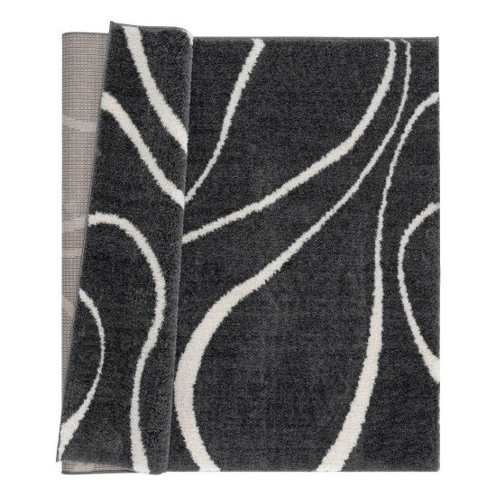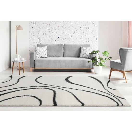 Add a modern flair to your room style with this ultra-contemporary rug. This effortlessly chic piece has a pure backdrop surrounding an abstract design that will create a luxurious feel within your home. Competently machine woven in Turkey using durable microfiber polyester yarn with jute backing for stain and fade resistance.