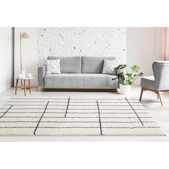Revitalize your interior decorative style with this dashing and stylish rug. Simplicity goes a long way with this geometric pattern and contemporary background that will enliven your room decor. Competently machine woven in Turkey using durable microfiber polyester yarn with jute backing for stain and fade resistance.